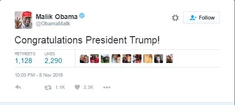 Malik Obama Congratulates 'President Trump'