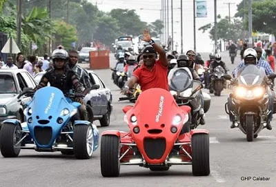 Cross River state governor Ben Ayade and his wife Dr. Linda attended the Bikers Festival, one of the side events at the ongoing Calabar Carnival. See photos of the Governor and his wife turning up: